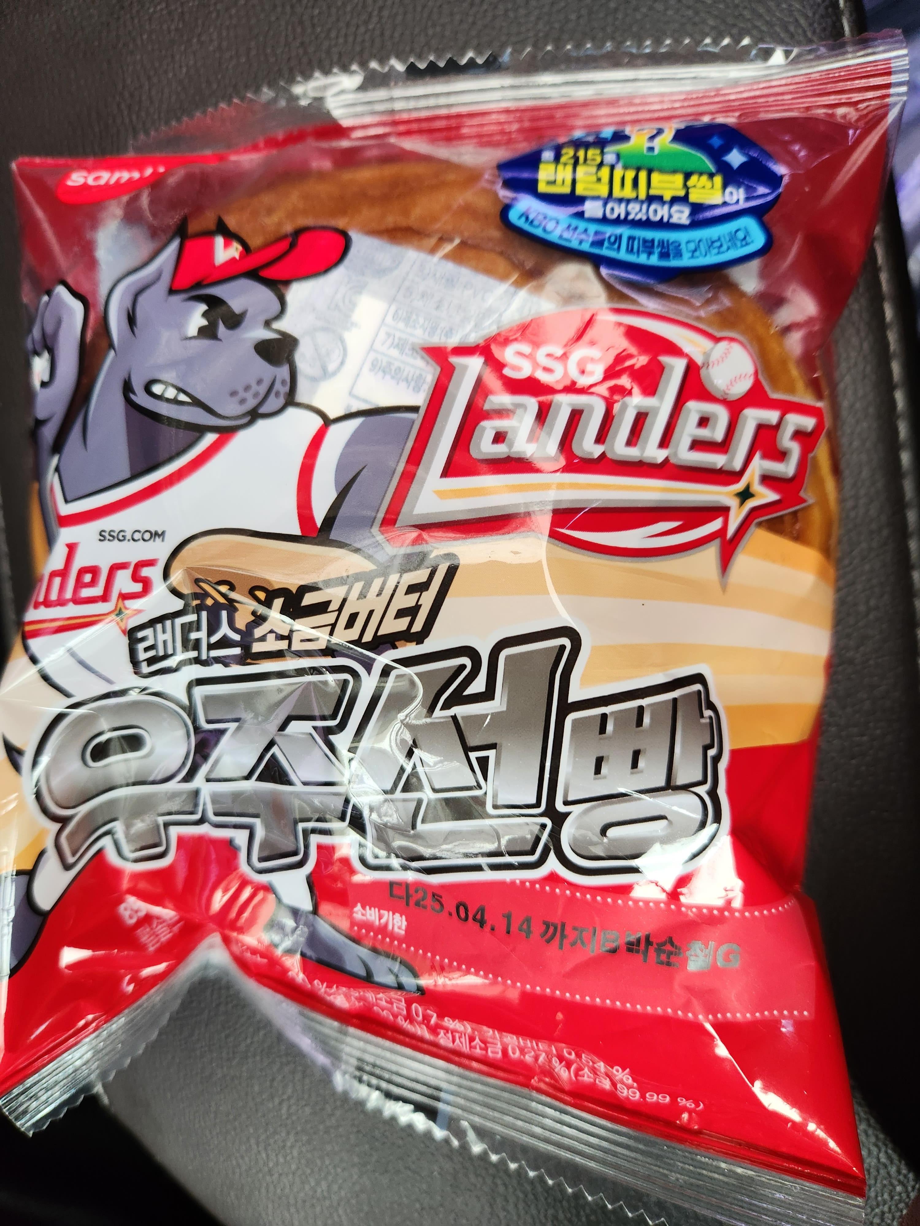 랜더스 소금버터 우주선빵과 베어스 곰발바닥 꿀빵도 먹어봤는데요, 랜더스 소금버터 우주선 빵 안에는 슈크림이 들어있고 슈크림 부분에 소금버터까 뿌려져 있어서 짭짤+달콤하면서 맛있었습니다.